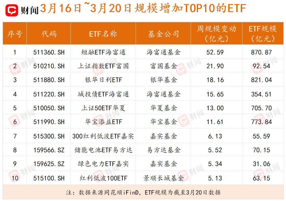 短融ETF海富通规模再创新高,黄金ETF华安单周缩水百亿
