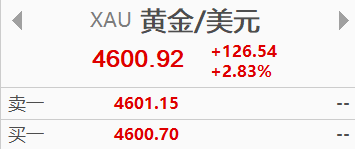 3月25日,现货黄金升至4600美元,日内上涨2.8%。