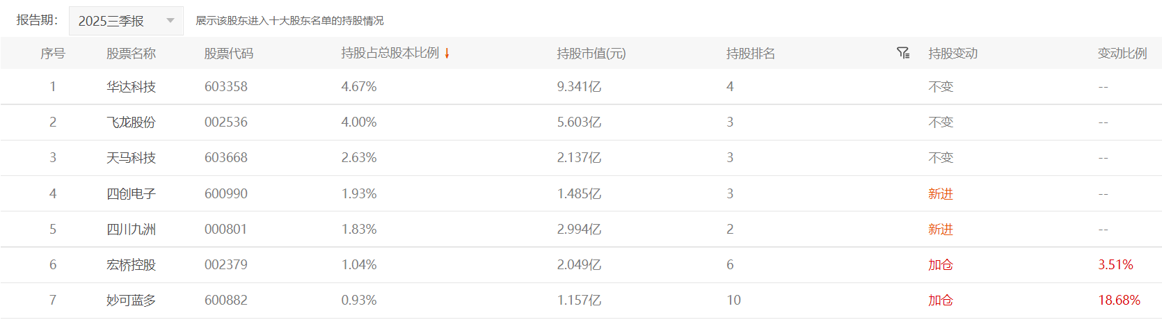 资料显示,张耀坤在2025年第三季度末曾进入7只股票的十大股东,持股金额合计已达24.77亿元。