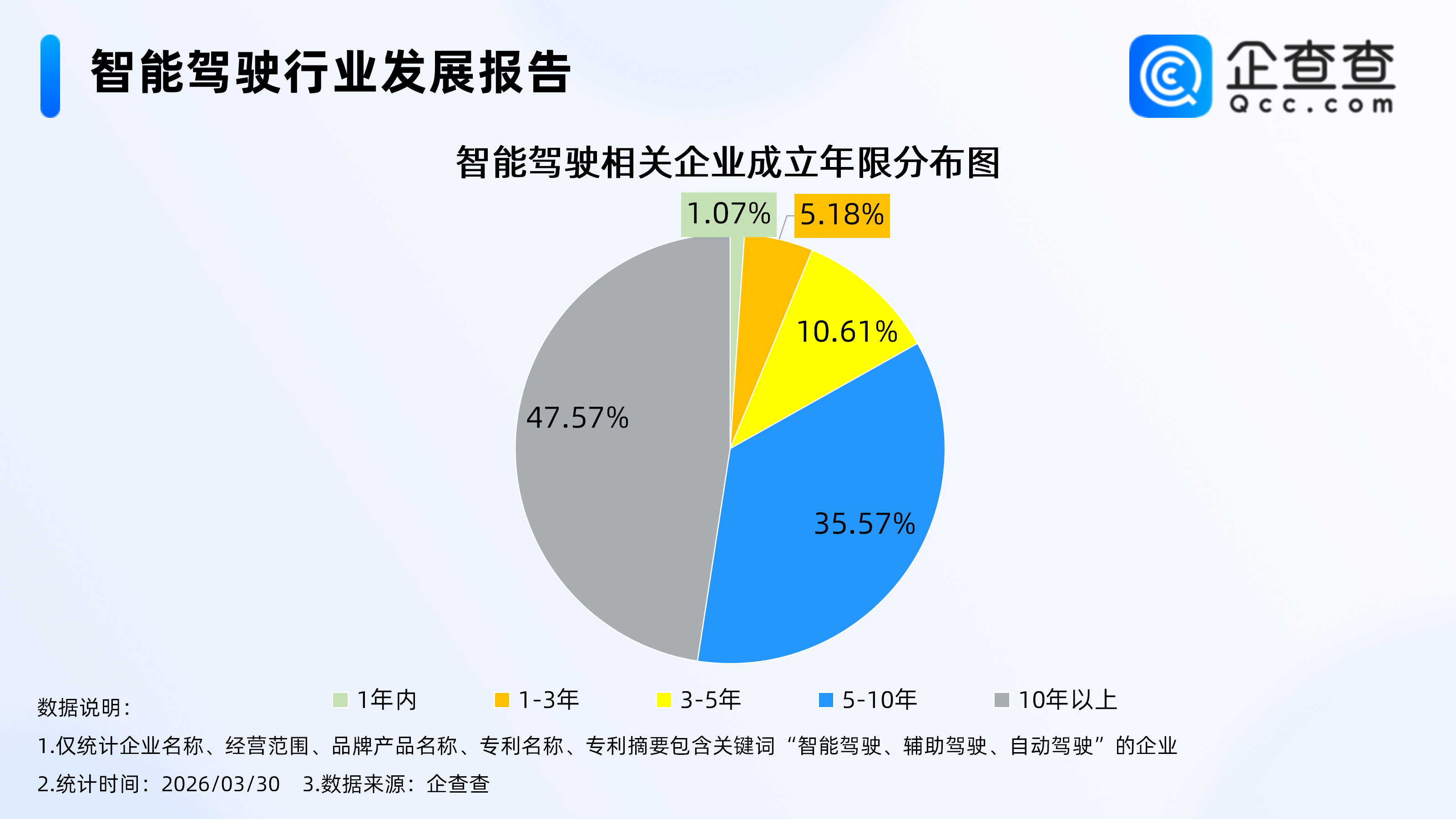 企查查数据显示,截至3月30日,国内现存智能驾驶相关企业7982家。注册量方面,2025年全年注册107家相关企业,截至目前,今年已注册6家。存量方面,从经营时间来看,成立10年以上的企业占比达47.57%,成立5-10年企业占比35.57%,两者合计超83%。从注册资本来看,智能驾驶相关企业多为资金密集型企业,注册资本5000万元及以上的企业最多,占比43.19%。区域分布上,华东地区领跑全国,相关企业占比达43.99%。