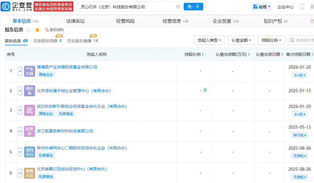 企查查显示,灵心巧手成立于2023年7月,法定代表人为周勇,现由德清县产业发展投资基金有限公司、北京翎佑福手柑企业管理中心(有限合伙)等共同持股。官网显示,灵心巧手专注于灵巧手和云端智能核心技术,通过打造具身智能平台,推动2B和2C市场发展。