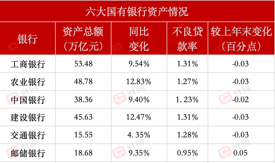 截至2025年末,工商银行资产总额达到53.48万亿元,成为全球首家总资产突破50万亿元的银行。另外,农业银行和建设银行资产规模均超过40万亿元。