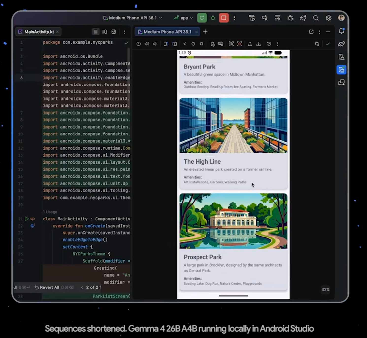 26B 和 31B 模型提供面向 IDE、编程助手和 Agent 工作流的高级推理能力。模型针对消费级 GPU 进行了优化,让学生、研究人员和开发者能够把自己的工作站变成以本地优先为核心的 AI 服务器。
