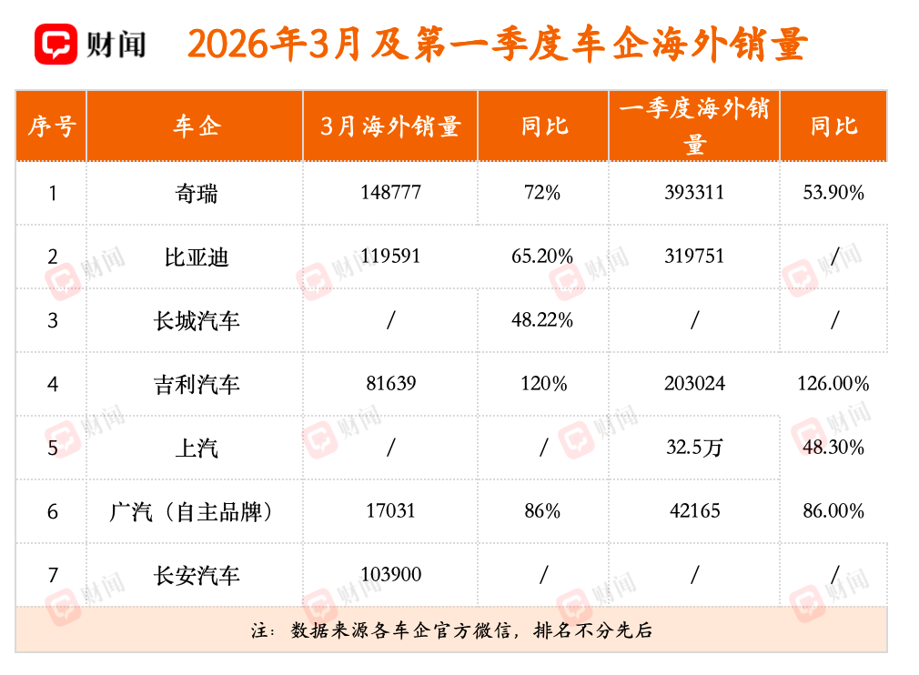 传统汽车集团,无论是3月还是一季度海外销量大多实现同比增长。新势力方面,各家也在纷纷拓展海外市场。