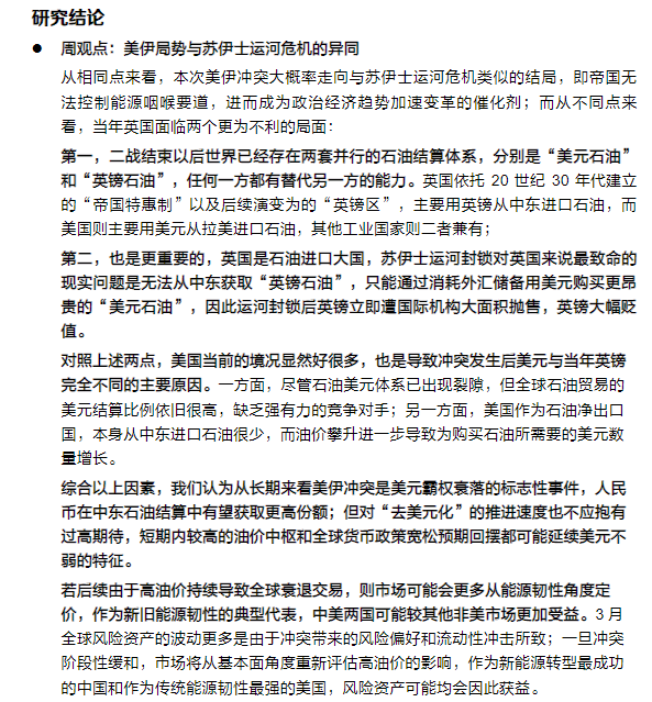 4月6日,东方证券研报指出,美伊局势与苏伊士运河危机的异同从相同点来看,本次美伊冲突大概率走向与苏伊士运河危机类似的结局,即帝国无法控制能源咽喉要道,进而成为政治经济趋势加速变革的催化剂;而从不同点来看,当年英国面临两个更为不利的局面: