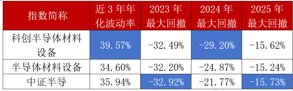 从波动率和回测数据来看,三个半导体设备指数的“脾气”和“软肋”就更为清楚。它们虽然同属半导体板块,但波动烈度、抗跌表现其实差异很大。
