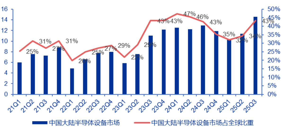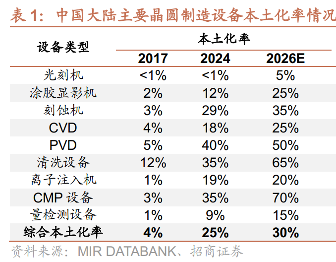 设备国产化进入加速期。根据半导体行业协会数据,中国大陆使用本土半导体制造设备的占比已从2024年的25%提升至2025年的35%。