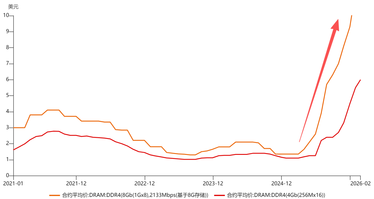 AI驱动的存储需求横跨所有领域,TrendForce预测2026年一季度 DRAM合同价格环比上涨90%—95%,Digitimes预计二季度DRAM价格可能进一步上涨70%,短缺或持续至2027年。