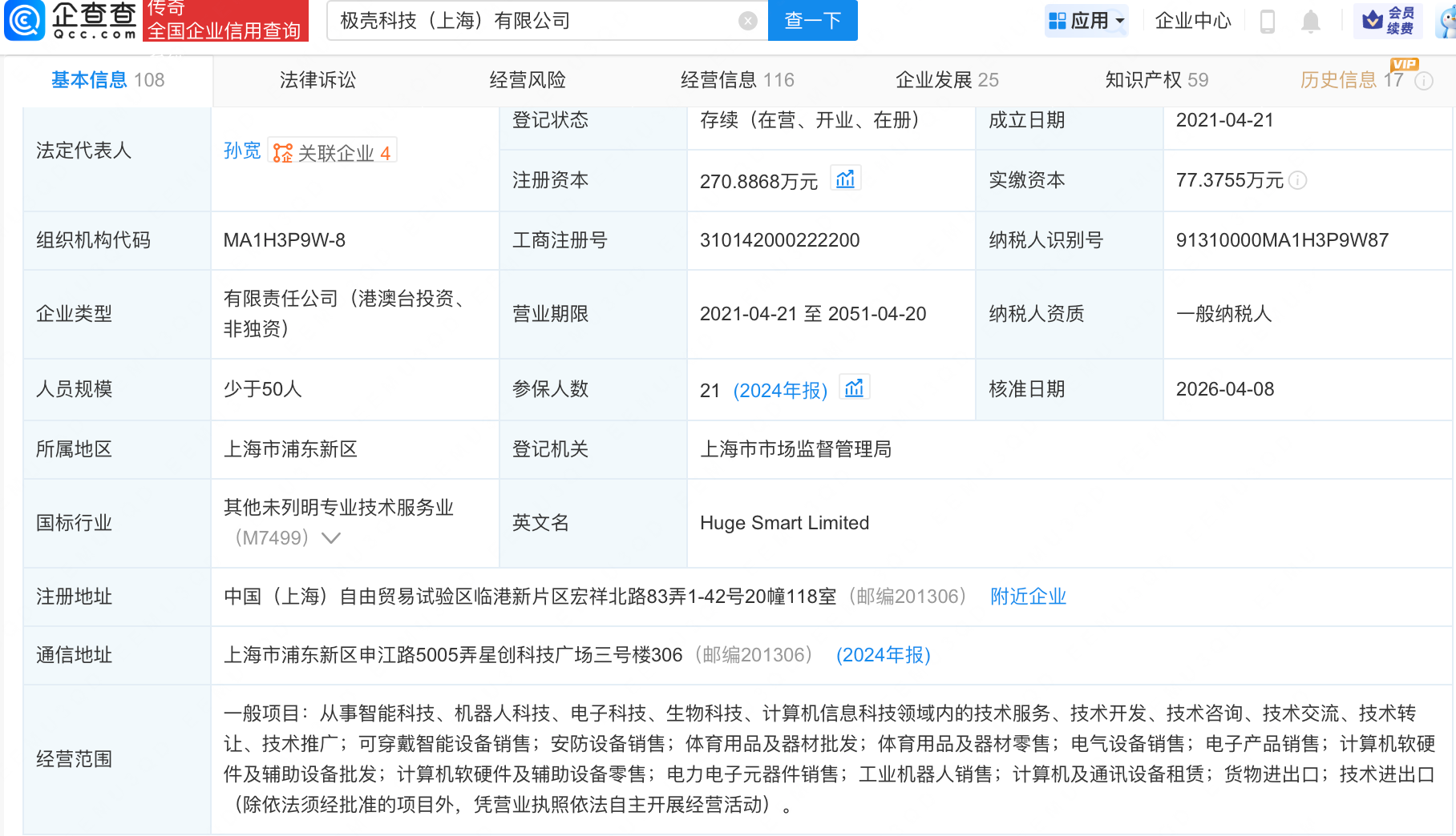 企查查信息显示,该公司成立于2021年,经营范围包含:从事智能科技、机器人科技、电子科技、生物科技、计算机信息科技领域内的技术服务等。公开信息显示,该公司是一家消费级外骨骼企业。