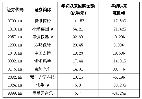 据同花顺iFinD,2026年以来,腾讯控股累计回购了1781万股,回购金额达101亿港元;小米集团回购18,616万股,回购金额超64亿港元;快手、吉利汽车(00175.HK)等亦积极回购。