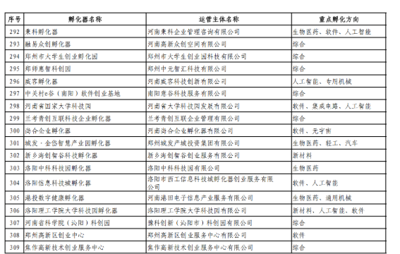 工信部发布首批科技型企业孵化器名单,河南18家机构入选标准级