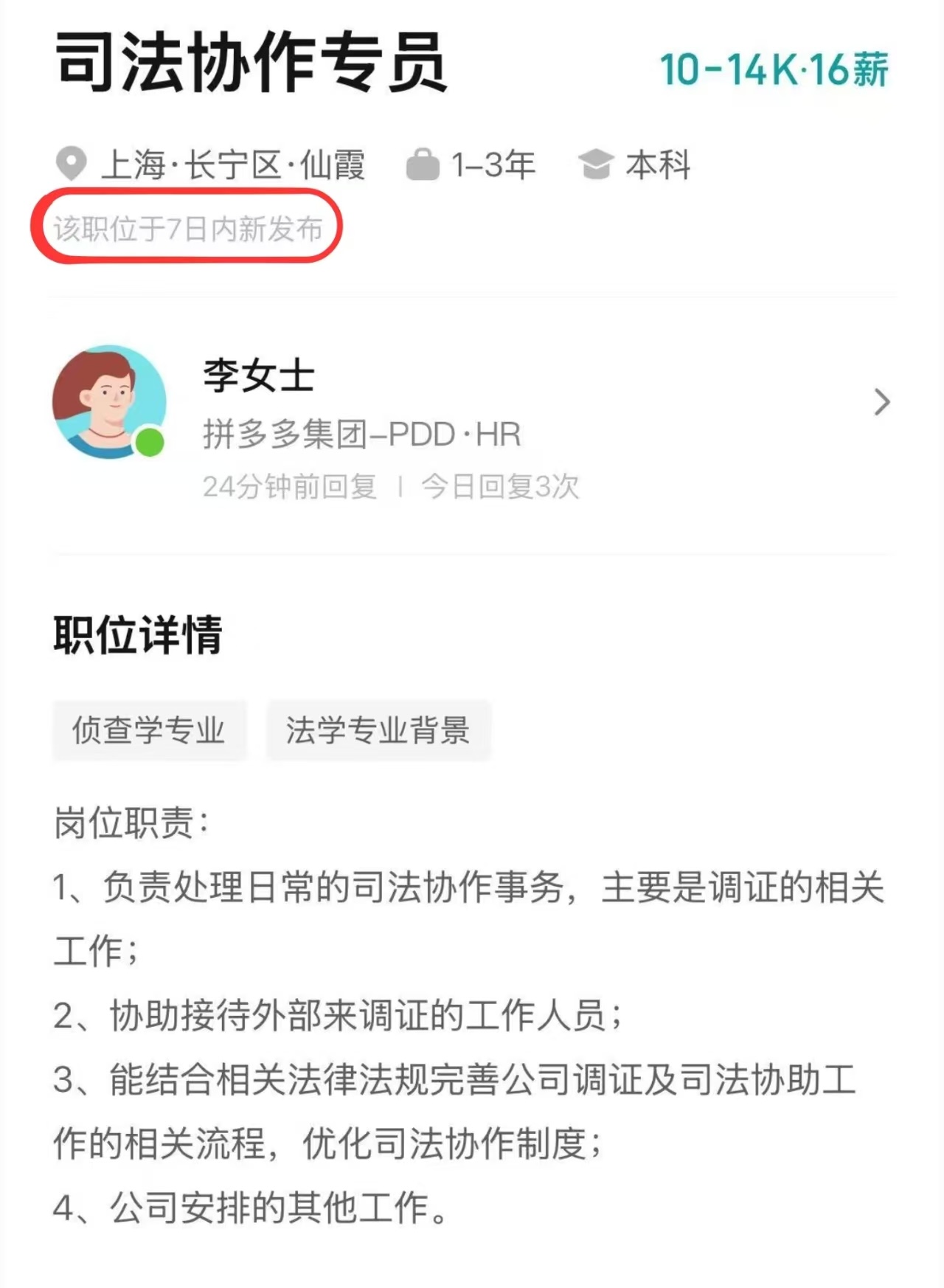 拼多多招聘司法协作专员引关注 对接外来调证人员