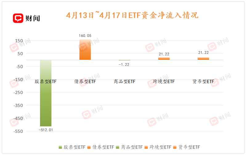 上周股票型ETF遭遇大规模净赎回,净流出规模从前一周的300多亿激增至512.01亿元。与此同时,债券型ETF吸金超百亿。