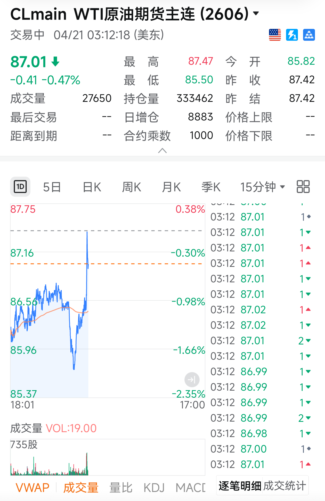 4月21日,国际油价直线拉升,WTI原油期货转涨,抹去此前2%的跌幅。