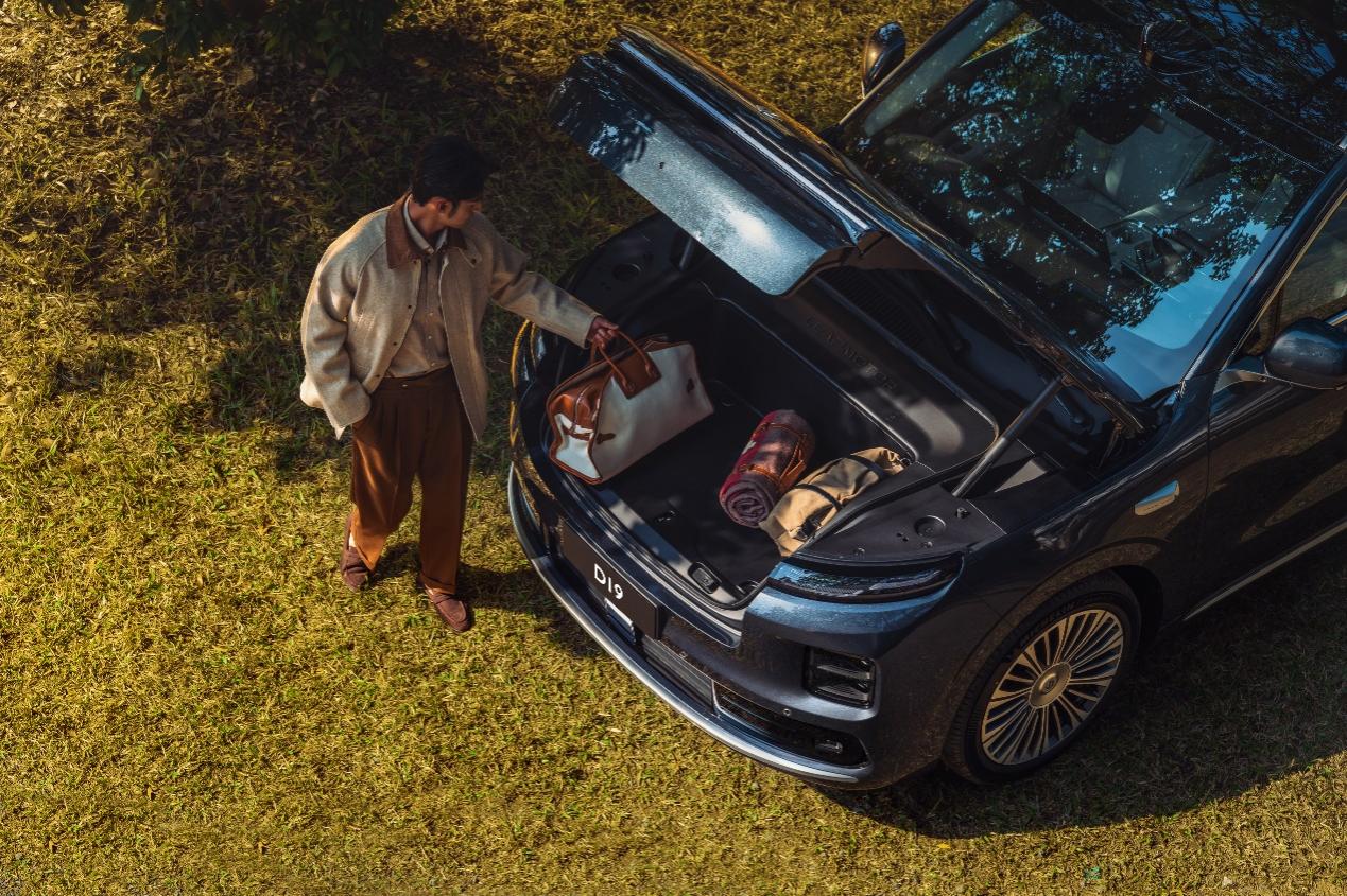全车拥有至高50处储物空间,分类清晰、触手可及,让每一件物品皆有所归。值得一提的是,D19纯电版配备L型低开口超宽电动前备舱,拥有176L超大储物空间,支持电动开合、220V电源插座、防泼水可冲洗、百变组合拓展(如厨房场景)等功能。后备厢常规容积达337L,七座版二三排座椅放倒后可扩展至2667L。灵活组合,满足全家出行全场景需求。
