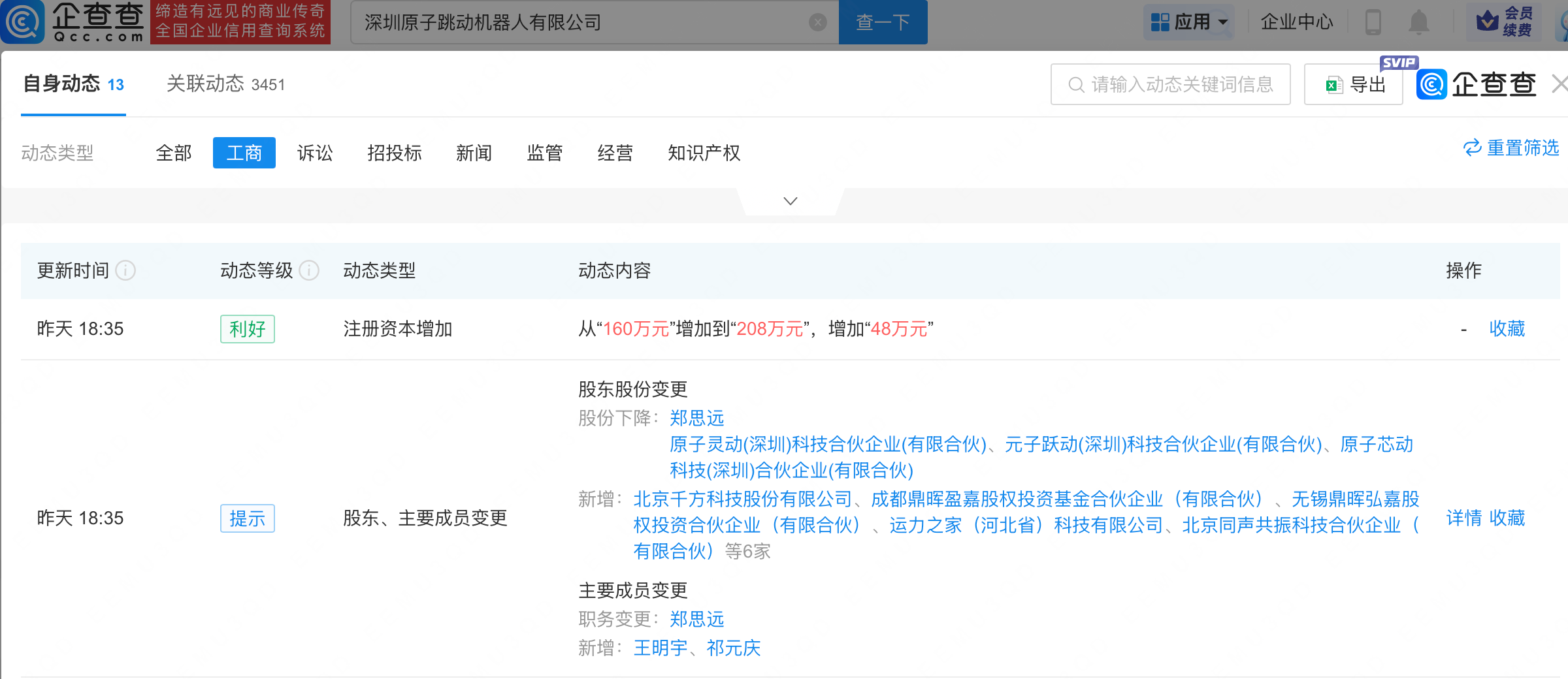 企查查APP显示,近日,深圳原子跳动机器人有限公司发生工商变更,新增千方科技(002373.SZ)等为股东,同时注册资本增至208万元。企查查信息显示,该公司成立于2026年1月,经营范围包含:智能机器人销售;人工智能应用软件开发;软件开发;物联网技术研发等。