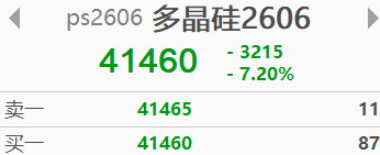 多晶硅期货低开低走,跌超7% 财闻 2026-04-24 10:38:46 多晶硅期货低开低走,盘中一度跌近9%。截至目前,多晶硅期货主力合约跌7.26%,报41430元/吨。 4月24日早盘,多晶硅期货低开低走,盘中一度跌近9%。截至目前,多晶硅期货主力合约跌7.20%,报41460元/吨。