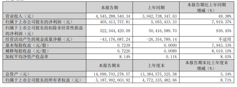 4月24日,飞南资源(301500.SZ)公告称,2026年第一季度实现营业收入45.45亿元,同比增长49.38%;归属于上市公司股东的净利润为4.05亿元,同比增长7919.37%。业绩变动主要系金属市场价格上涨,销售额大幅增长,盈利能力增强所致。公司Q1净利润4.05亿,2025年Q4净利润0.87亿,据此计算,Q1净利润环比增长366%。