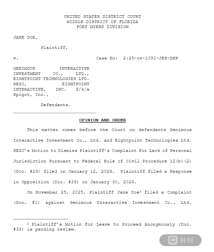 4月24日,财闻查询美国相关司法信息网站,同样获取上述法律文书,并有相关知情人士进一步表明该起诉讼真实存在。