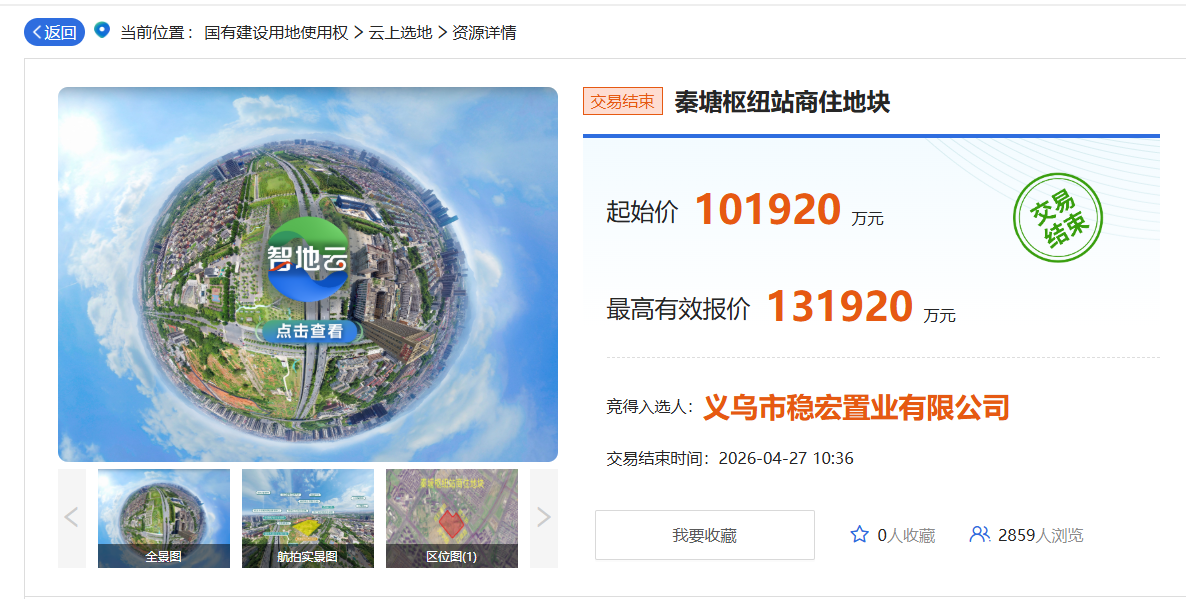 总价13.192亿元 义乌一宗涉宅用地溢价近30%成交