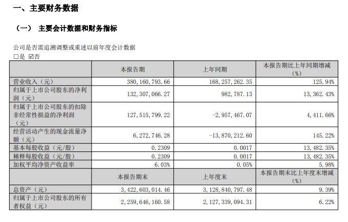 4月27日,博云新材(002297.SZ)公告,2026年第一季度营收为3.8亿元,同比增长125.94%;净利润为1.32亿元,同比增长13362.43%。