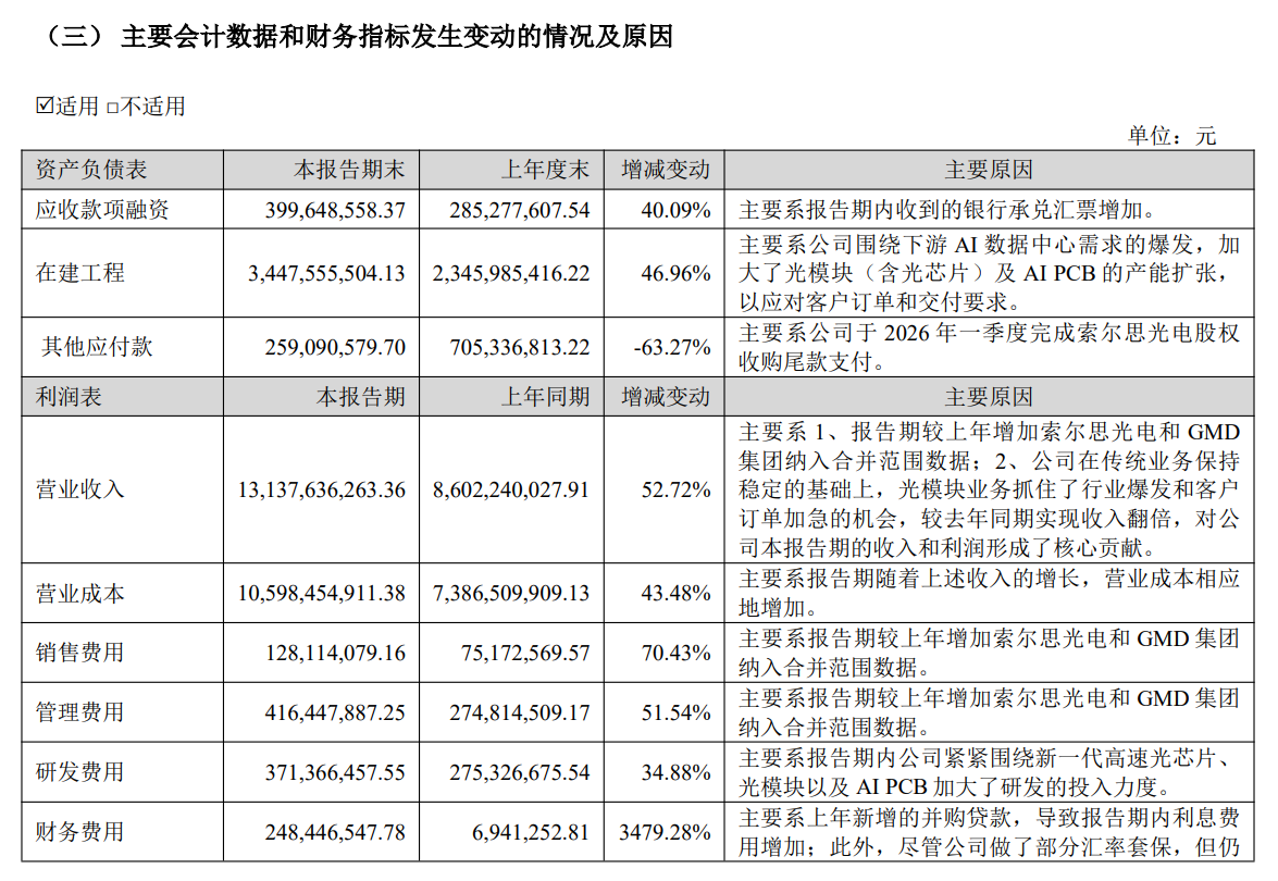 光模块业务收入翻倍,东山精密2026年Q1净利增长143.47%