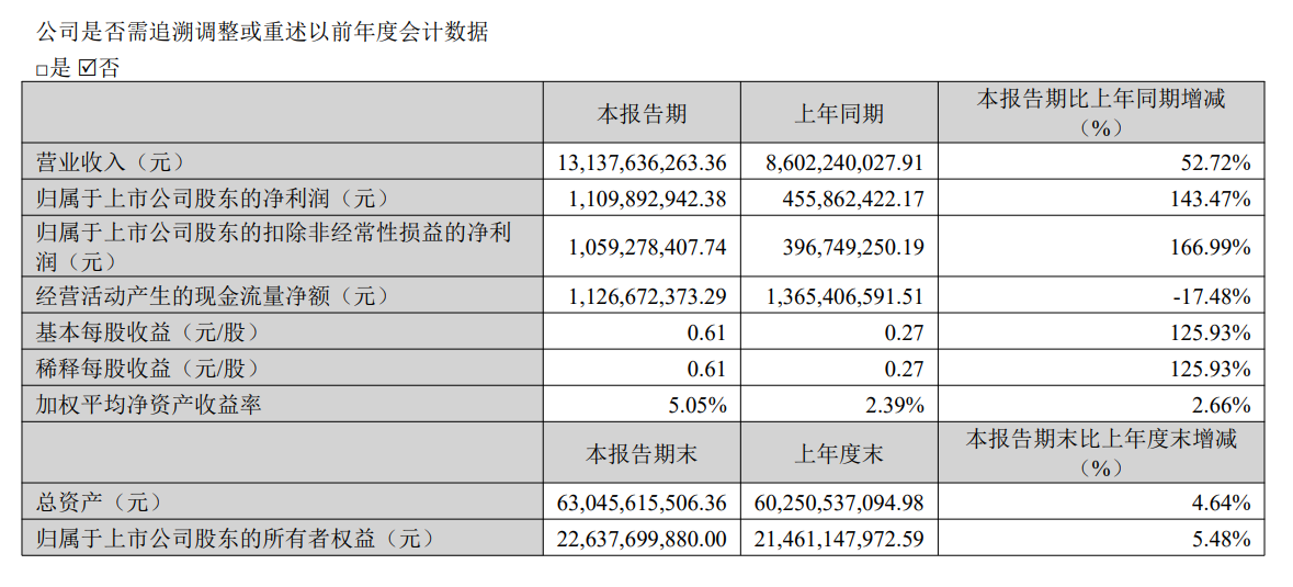4月27日,东山精密(002384.SZ)公告称,2026年第一季度实现营业收入131.38亿元,同比增长52.72%;归属于上市公司股东的净利润为11.10亿元,同比增长143.47%。