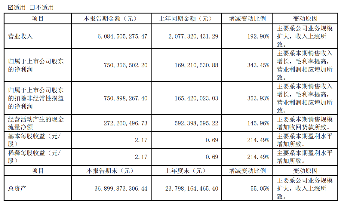 4月27日,协创数据(300857.SZ)公告称,2026年第一季度实现营业收入60.85亿元,同比增长192.90%;归属于上市公司股东的净利润为7.50亿元,同比增长343.45%。业绩变动主要系本期销售收入增长,毛利率提高,营业利润相应增加所致。