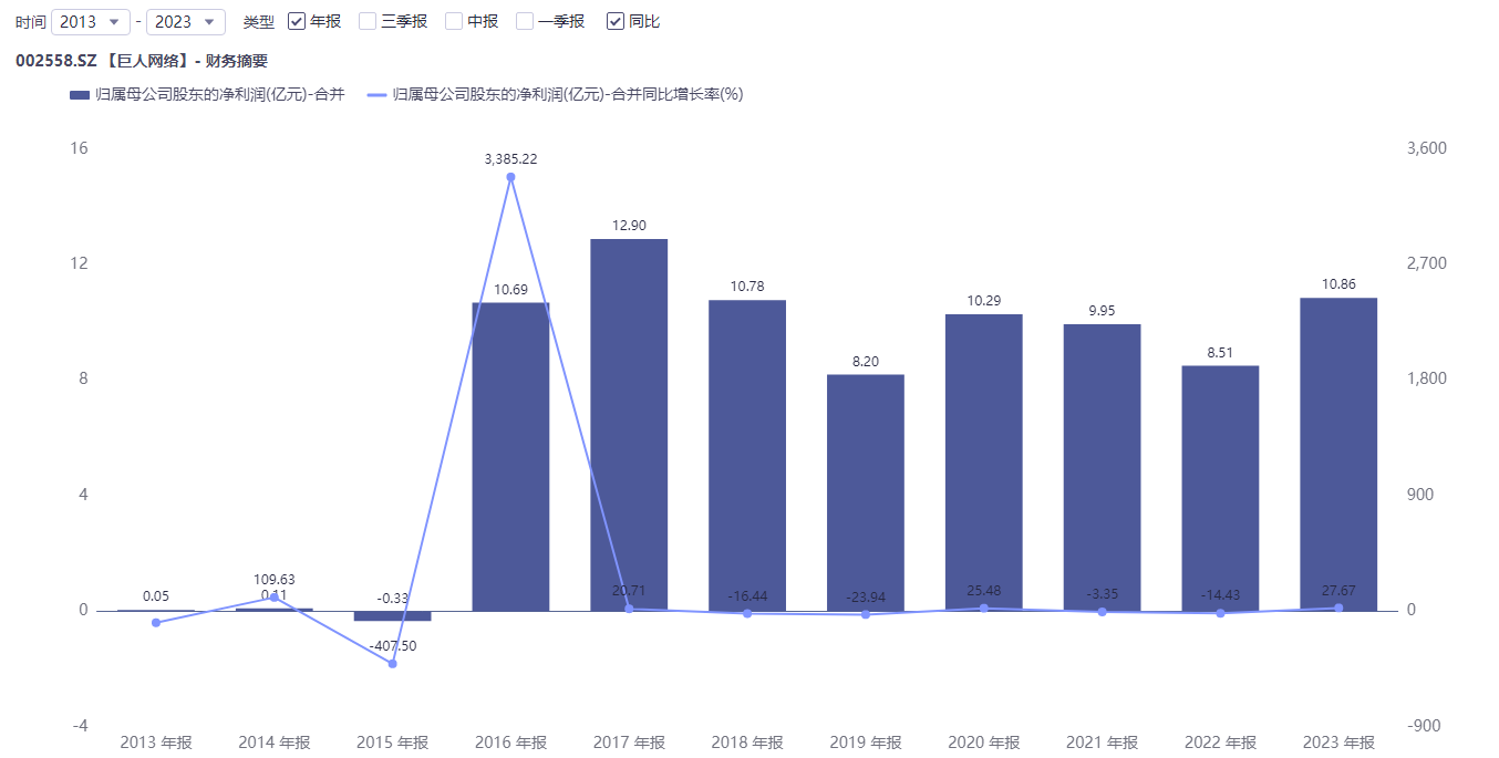 在史玉柱缺阵的10年间(2013年—2023年),曾靠国内首款免费游戏《征途》打天下的巨人网络,过得可谓不如人意。
