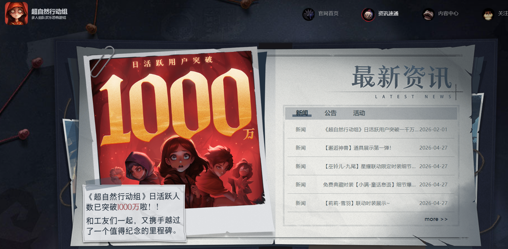 去年1月,《超自然行动组》正式上线,凭借“中式微恐+搜打撤”的差异化玩法逐渐走红。最新数据显示,该款游戏目前已累计注册用户超2亿人,累计为巨人网络贡献超50亿元流水。