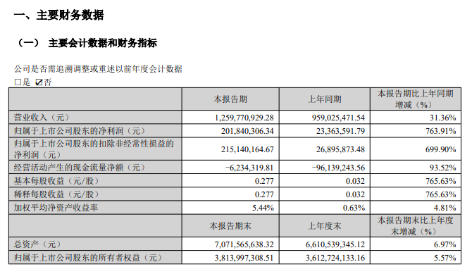 2026年一季度实现营收12.6亿元,同比增长31.36%;归属于上市公司股东的净利润2.15亿元,同比增长699.90%。
