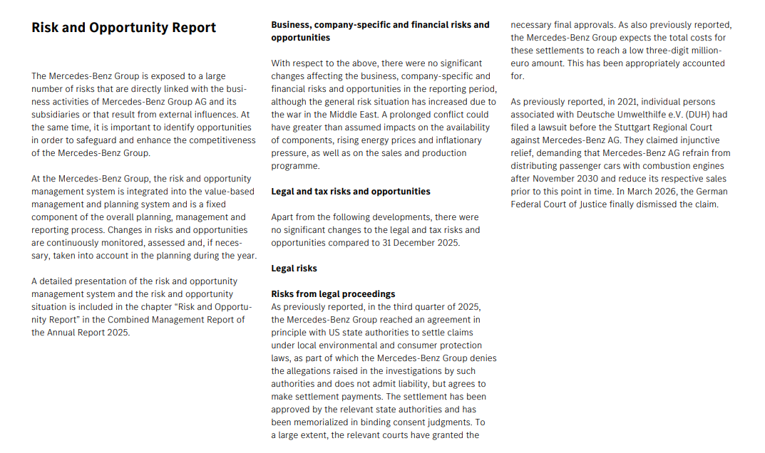 然而,在积极推动新产品的同时,公司也明确发出了风险警告。与往年主要关注宏观经济和贸易摩擦不同,本次报告将“中东战争”列为新的、显著的风险因素。报告在开篇的“重要事件”中就指出:“自2026年2月底伊朗战争爆发以来,焦点尤其集中在中东地区的事态发展及其对经济状况和集团业务发展的潜在影响。”在展望部分,公司进一步阐述了这一风险的具体传导路径。报告警告称,一场长期冲突可能带来“超出预期的影响”,这些影响具体包括:零部件供应:可能扰乱全球供应链,影响零部件可得性。能源价格:已导致能源价格大幅上涨,增加运营成本。通胀压力:推高通货膨胀率,削弱消费者的购买力。销售与生产:对集团自身的销售和生产计划造成直接冲击。此外,报告还提到了其他持续存在的风险,如汇率波动、关税和贸易政策的变化,这些都可能对全年业绩产生负面影响。