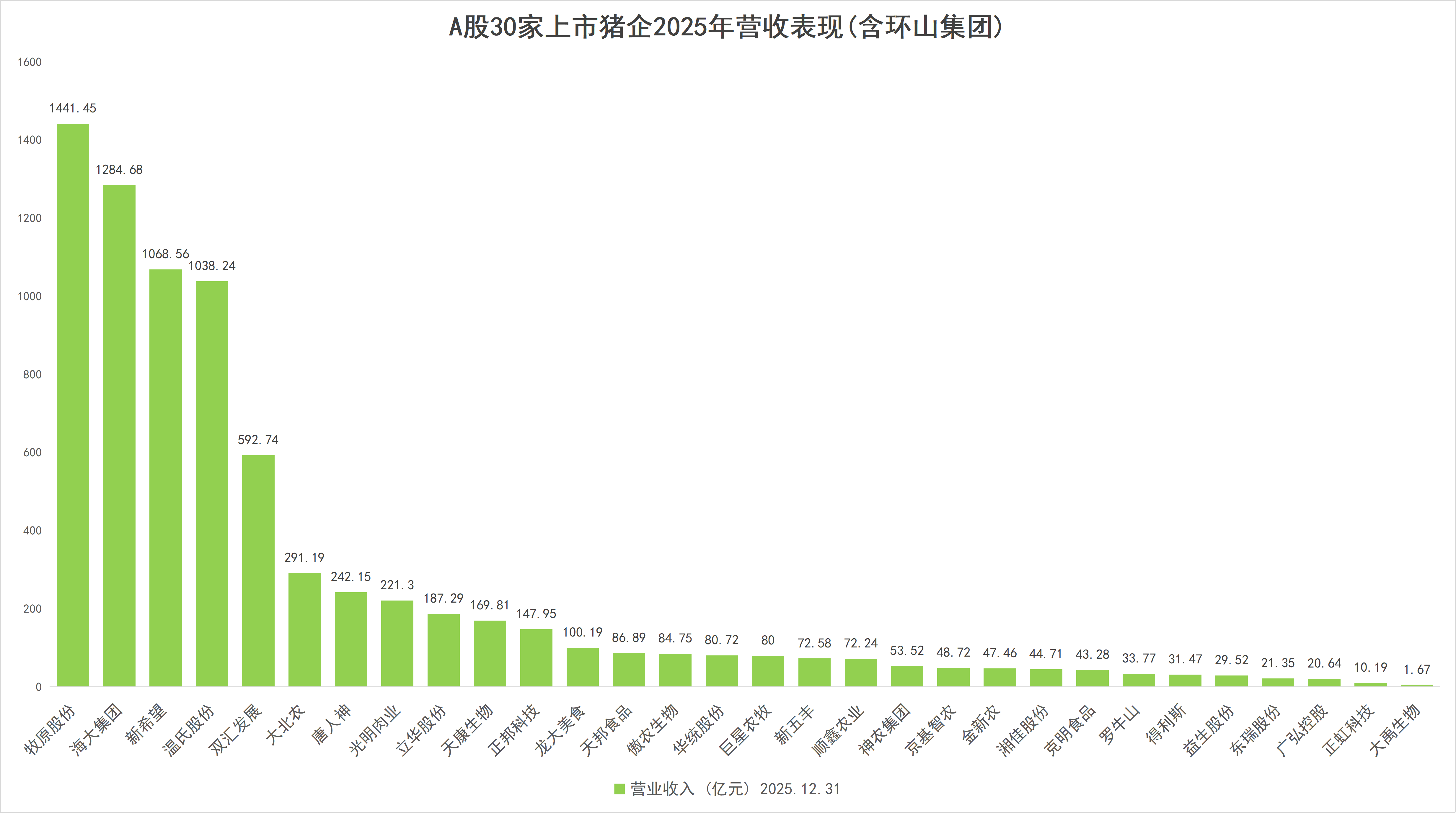 从营收规模看,环山集团2025年营收57.56亿元,在A股上市猪企中高于神农集团(605296.SH)的53.52亿元。在30家上市猪企排名第19。不过净利润明显高于神农集团的3.39亿元。但相比神农集团截至到4月30日的市值157.22亿元,环山集团本次挂牌价仅为神农集团的五分之一。