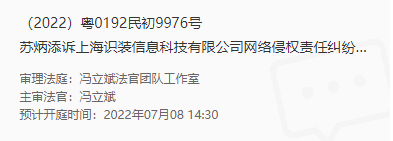 6月17日,广东互联网法院官网新增的开庭公告显示,因网络侵权责任纠纷(肖像权纠纷),苏炳添起诉得物关联公司上海识装信息科技有限公司,预计开庭时间为7月8日。