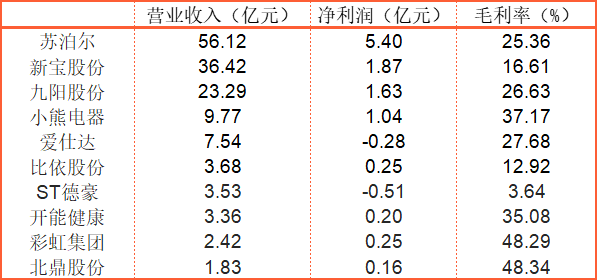在市场整体景气度下降、原材料成本增加的情况下,2021年,小熊电器和九阳股份均出现收入利润的双降,新宝股份净利润同比下滑29.15%,苏泊尔在2020年利润下滑的情况下,2021年利润仅同比增加5.29%。