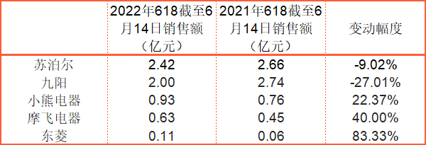2022年“6·18”大促,几家主要的厨房小家电企业大促表现如何?和2021年相比,各家公司业绩是否转好?