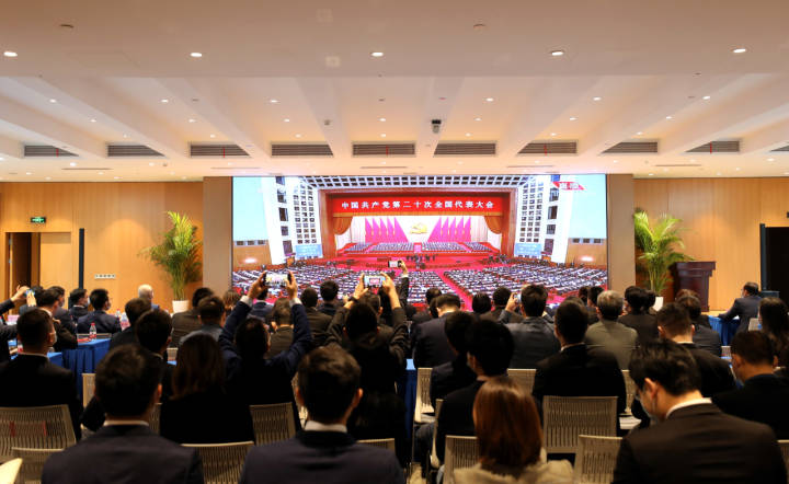 传化集团组织党员与员工同步收看党的二十大开幕会直播盛况。浙江新闻客户端记者 魏志阳 俞碧寅 摄