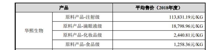 银柿财经查询焦点福瑞达官网后并未发现公司有披露食品级透明质酸钠的具体售价,但银柿财经从华熙生物2019年的招股说明书中了解到,食品级透明质酸原料的平均销售价格为1258.36元/公斤,约为注射级原料价格的百分之一。而华熙生物的主要供应商中就有一家叫福瑞达生物科技有限公司(以下简称:福瑞达生物)。
