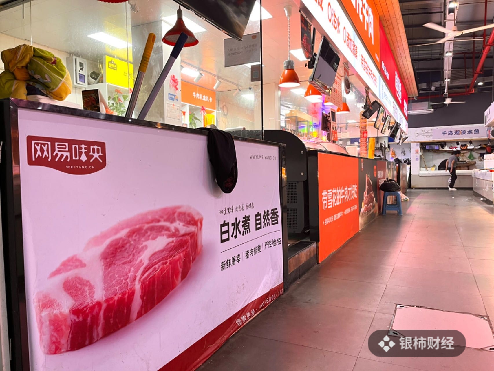 这里是杭州采荷农贸市场内的网易味央首家社区店。在今年3月下旬开业迎来短暂热闹之后,不到2个月的时间,门店便黯然关张。对此,附近几家猪肉档口的商户表示并不意外,“猪肉卖得太贵,没有多少生意”。