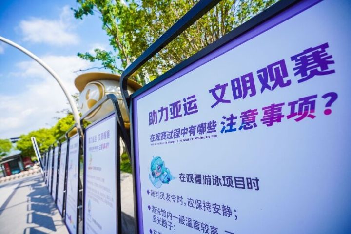 活动当天,身着红马甲的文明志愿者,站在《文明观赛礼仪》宣讲展板前和市民亲切互动,他们热情地向过往市民倡导文明观赛新风尚。位于龙湖丁桥天街3号门的“丁兰YUN味驿”亚运青年V站也正式开放运营,首批观赛空间志愿服务队也已入驻,志愿者热情地为来往游客指引方向、提供志愿服务等。前期,丁兰街道党群服务中心、街道团工委、新时代文明实践所、街道新联会,广泛发动组建观赛空间志愿服务队,每日轮流上岗。其中,以西子智慧产业园、桃花湖商圈党员志愿者为基础,组建“两新青年志愿小队”,浓厚两新组织参与亚运服务氛围;以辖区中小学青少年为基础,结合少先队向社区报到工作要求,组建“红领巾轮值志愿小队”,展现亚运“好客小主人”形象;此外,还有来自高校、企事业单位、社区等志愿者、在职党员、新的社会阶层人士组成的丁兰青年学习小组代表加入该观赛空间志愿服务队,定期开展青年学习日主题志愿服务、文明知识宣讲活动。