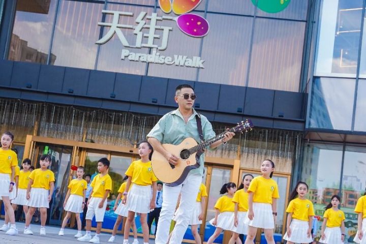 快闪活动现场,除了《同爱同在》之外,参与者还演绎了另一首歌曲《美丽亚细亚 好大一个家》。随着吉他弹奏的歌曲前奏响起,25名小朋友从人群中飞奔向舞台,行了歌曲合唱。紧接着15名街舞表演者,也来到舞台中间,欢快的跳跃了起来,酷炫的舞姿,灵动的身影,惹得市民们一阵叫好。