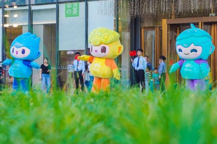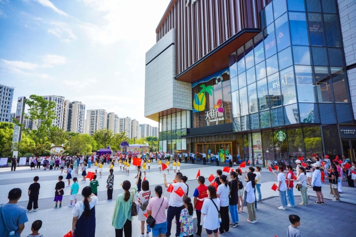 近日,杭州龙湖丁桥天街(亚运观赛空间)热闹非凡,亚运吉祥物莲莲、琮琮、宸宸在天街门口,招着手,欢迎着往来的市民朋友,还时不时与大家合影留念,一场主题为“笑迎亚运 精彩有我”迎亚运快闪活动拉开了序幕。