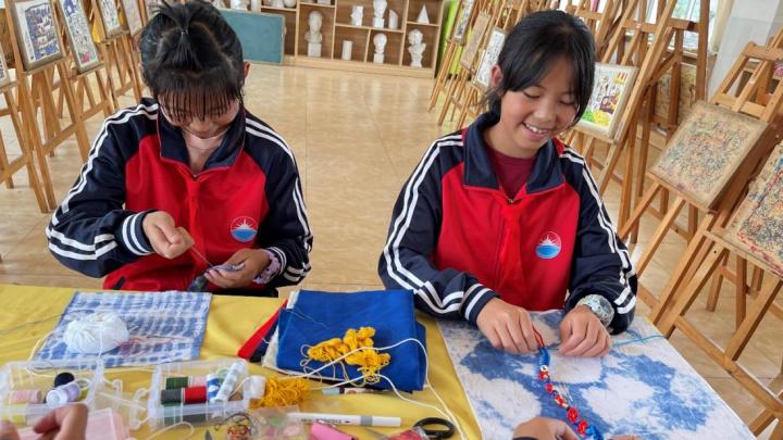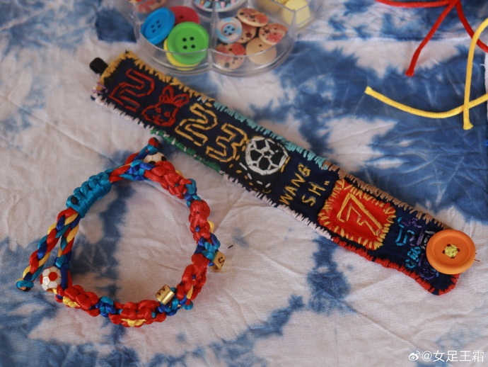 为了给王霜和中国女足加油,祝福她们的亚运征程,4名靖外明德小学的女足球员利用3天美术课的时间,精心制作了这份特别的礼物。据校长雷应飞介绍,“追风女孩”们为了体现地域特色,在美术老师的指导下,还专门用了蜡染和刺绣的工艺,“孩子们想给王霜和中国女足一份最特别的心意,所以做这个手环的时候特别认真。”