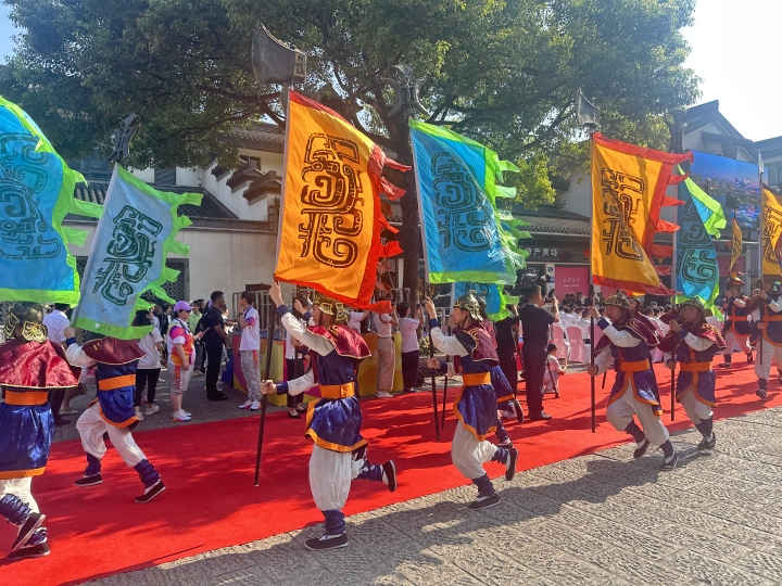 临近9点,现场气氛逐渐火热起来。一曲展现春秋战国时期越王出征吴国场面的精彩舞蹈,凸显了绍兴作为越国古都所在地,传承“卧薪尝胆、励精图治、以弱胜强”的不屈精神。