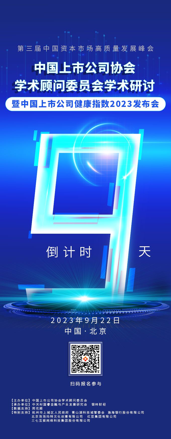 为更深入服务中国上市公司高质量发展,中国上市公司协会学术顾问委员会学术研讨暨中国上市公司健康指数2023发布会将于9月22日在北京召开,会议将邀请知名专家学者作主题演讲,并邀请上市公司和相关机构就如何促发展、强信心进行深入讨论。