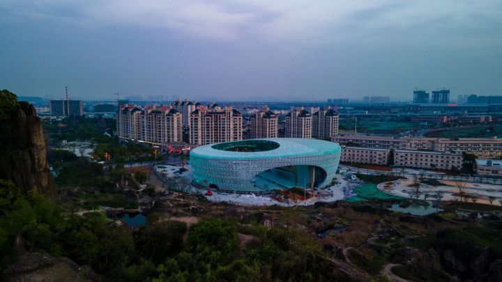 比如,绍兴柯桥羊山攀岩中心,外形酷似一个巨大的蚕茧。绍兴柯桥是亚洲最大的纺织品集散中心,蚕茧则象征着丝绸文化。