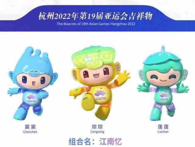 “琮琮”来自良渚古城遗址,代表着文明的传承和中华文化自信;“莲莲”来自西湖,象征着杭州的生态文明;“宸宸”来自京杭大运河,体现智能亚运理念。三个吉祥物的组合有一个共同的名字——江南忆。