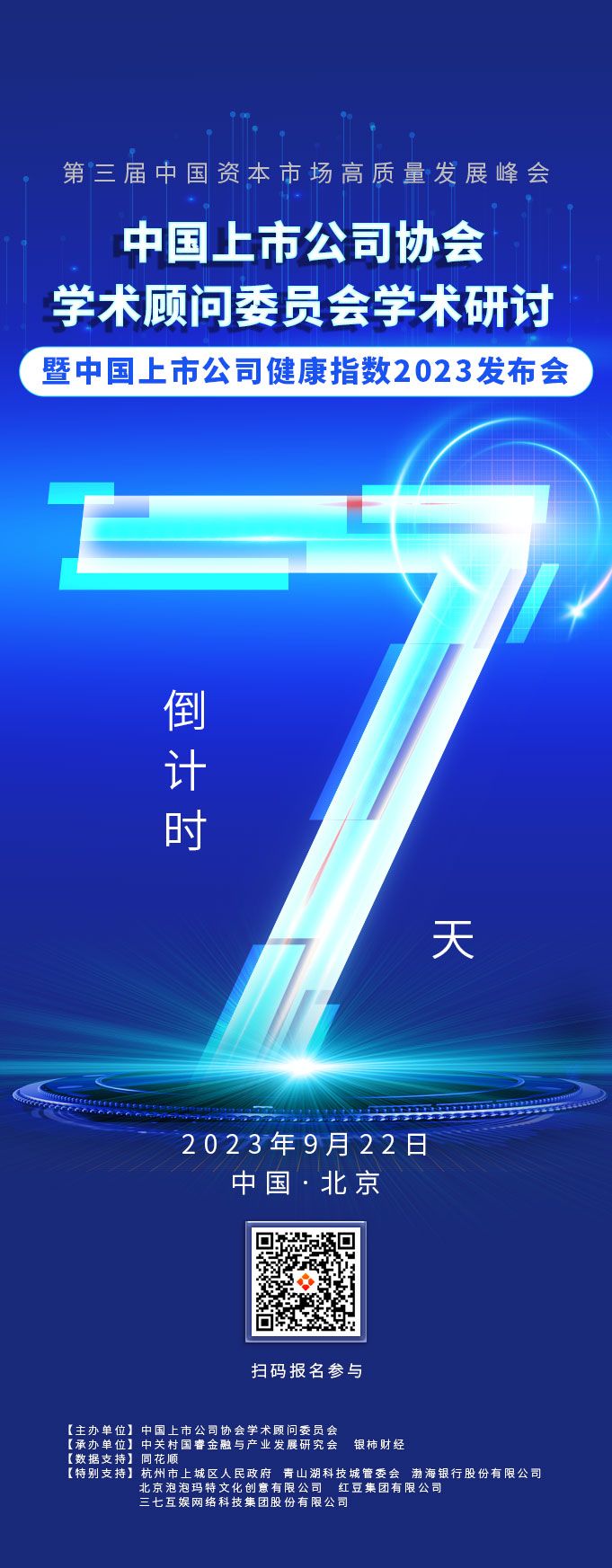 9月22日,中国上市公司协会学术顾问委员会学术研讨暨中国上市公司健康指数2023发布会将在北京召开。在这次会议上,知名专家学者、上市公司和相关机构代表将就上市公司如何促发展、强信心进行深入讨论。此外,中关村国睿金融与产业发展研究会将发布根据健康诊断体系推出的《中国上市公司健康指数报告(2023)》和健康诊断平台。