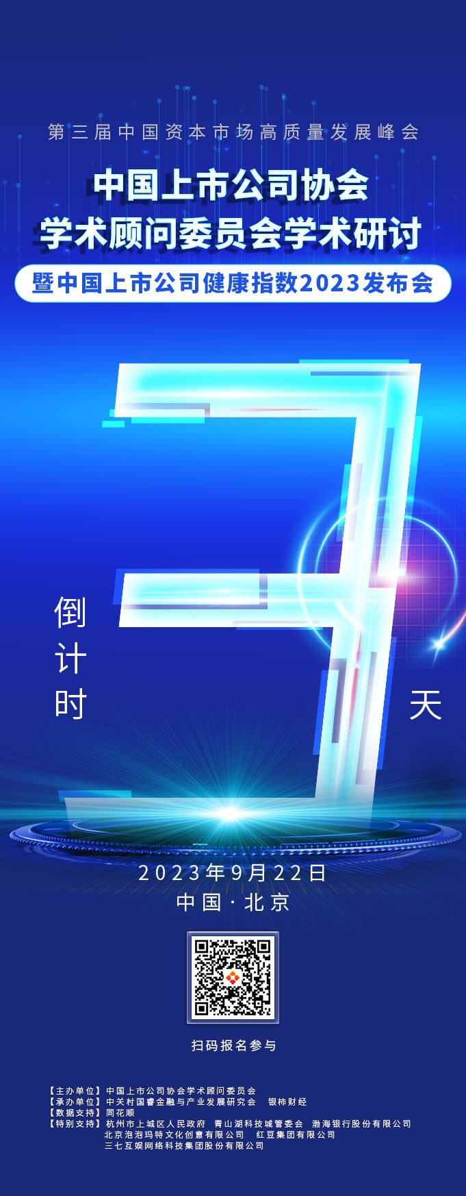 2023年9月22日,中国上市公司协会学术顾问委员会学术研讨暨中国上市公司健康指数2023发布会将在北京召开。全新的《中国上市公司健康指数报告(2023)》将发布,报告将带来怎样最新的上市区域分析成果和资本市场洞见,值得期待。
