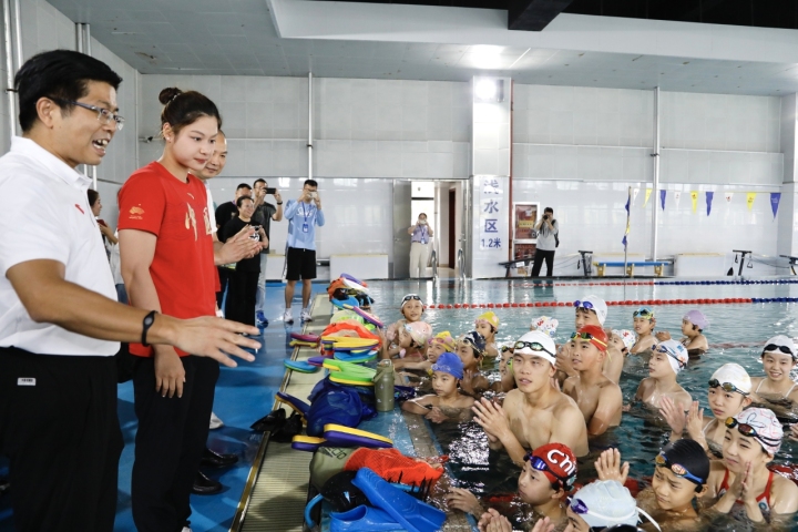 “欢迎依婷姐姐,向依婷姐姐学习!”在镇海区游泳队游泳池训练现场,游泳小将们挥舞着手臂齐声大喊,向余依婷表示热烈的欢迎。在大家的注目和欢呼声中,余依婷寄语在场的青少年:“要珍惜每一次比赛的机会,赛出佳绩,赛出风采。”
